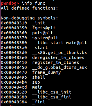 먼저 info func 명령을 이용해서 shell의 주소를 얻었다.
